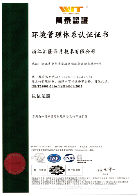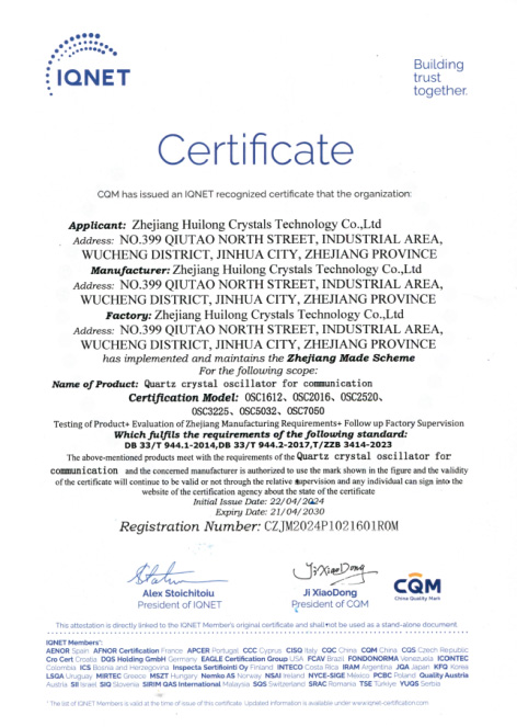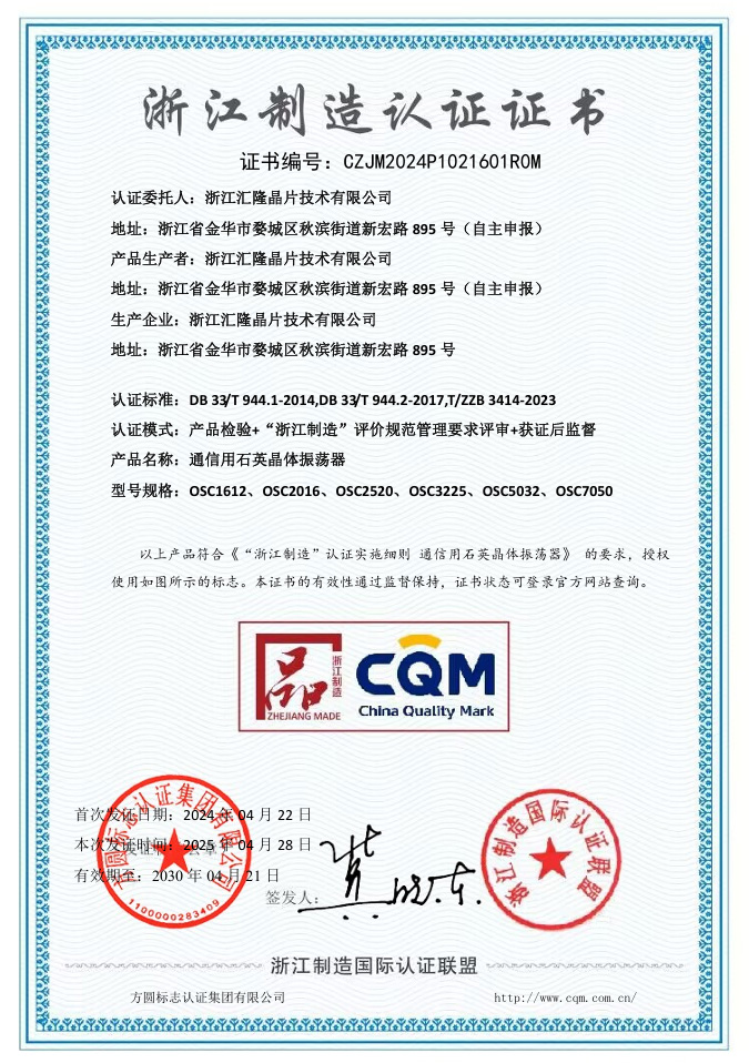 浙江匯隆晶片科技有限公司成立於1998年,建築面積5,0431平方米,註冊資本5,000萬元人民幣。該公司是一家專業從事石英晶體諧振器、石英晶體振盪器和石英晶體頻率晶片的設計、製造和銷售的高新技術企業。